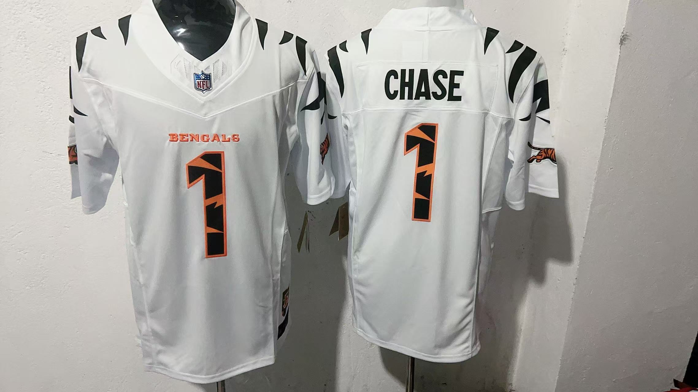 Cincinnati Bengals #1 Ja’Marr Chase White Tiger Stripe Stitched Jersey