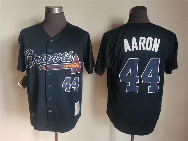 Vintage Atlanta Braves #44 Hank Aaron Stitched Navy Blue Baseball Jersey Throwback Edition